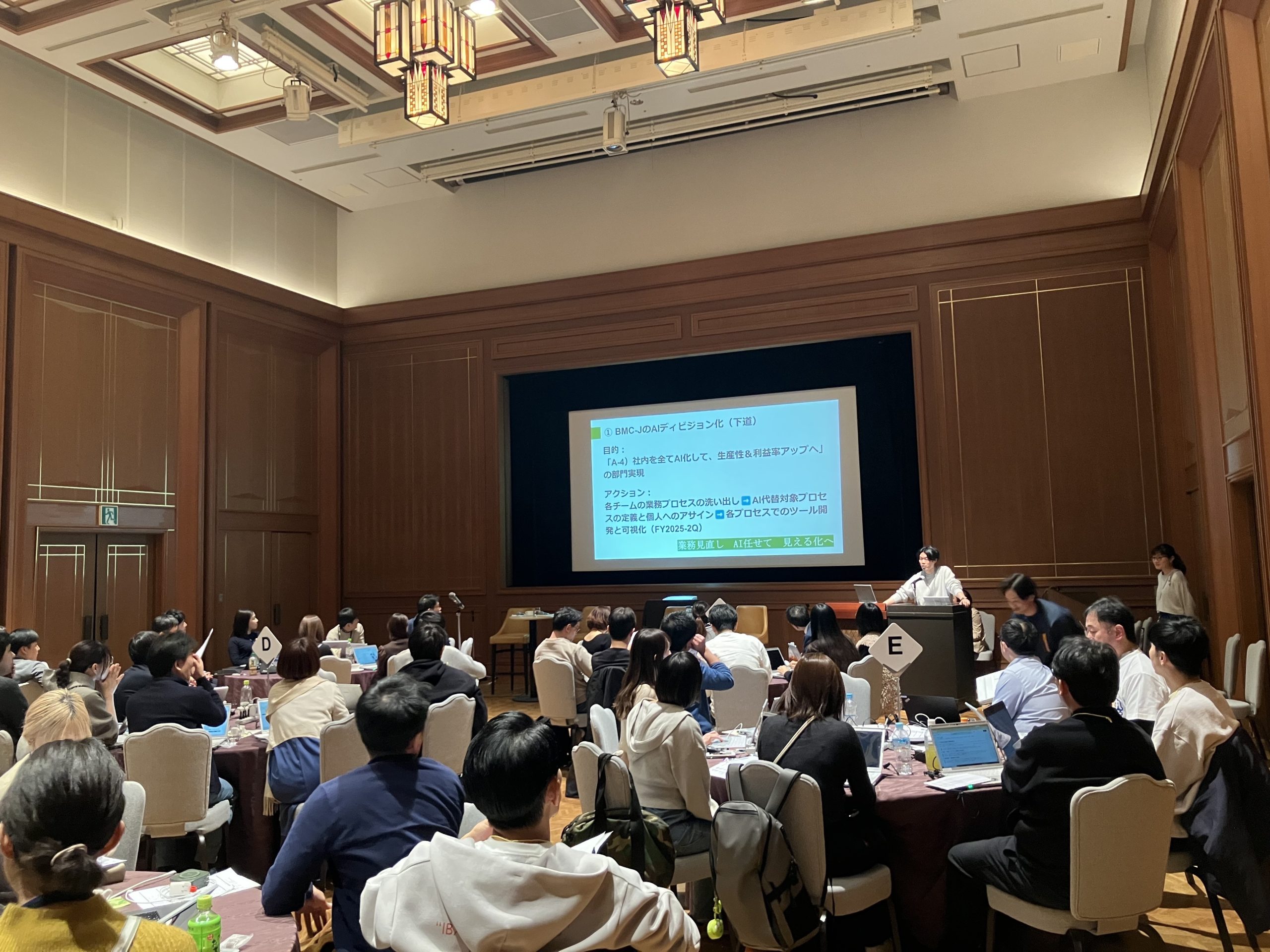 年に一度、全スタッフが参加する宿泊型の研修です。部門を超えた交流、トップとの直接対話、ビジョンの共有を行い、戦略や方針の推進と、組織の一体感を醸成します。