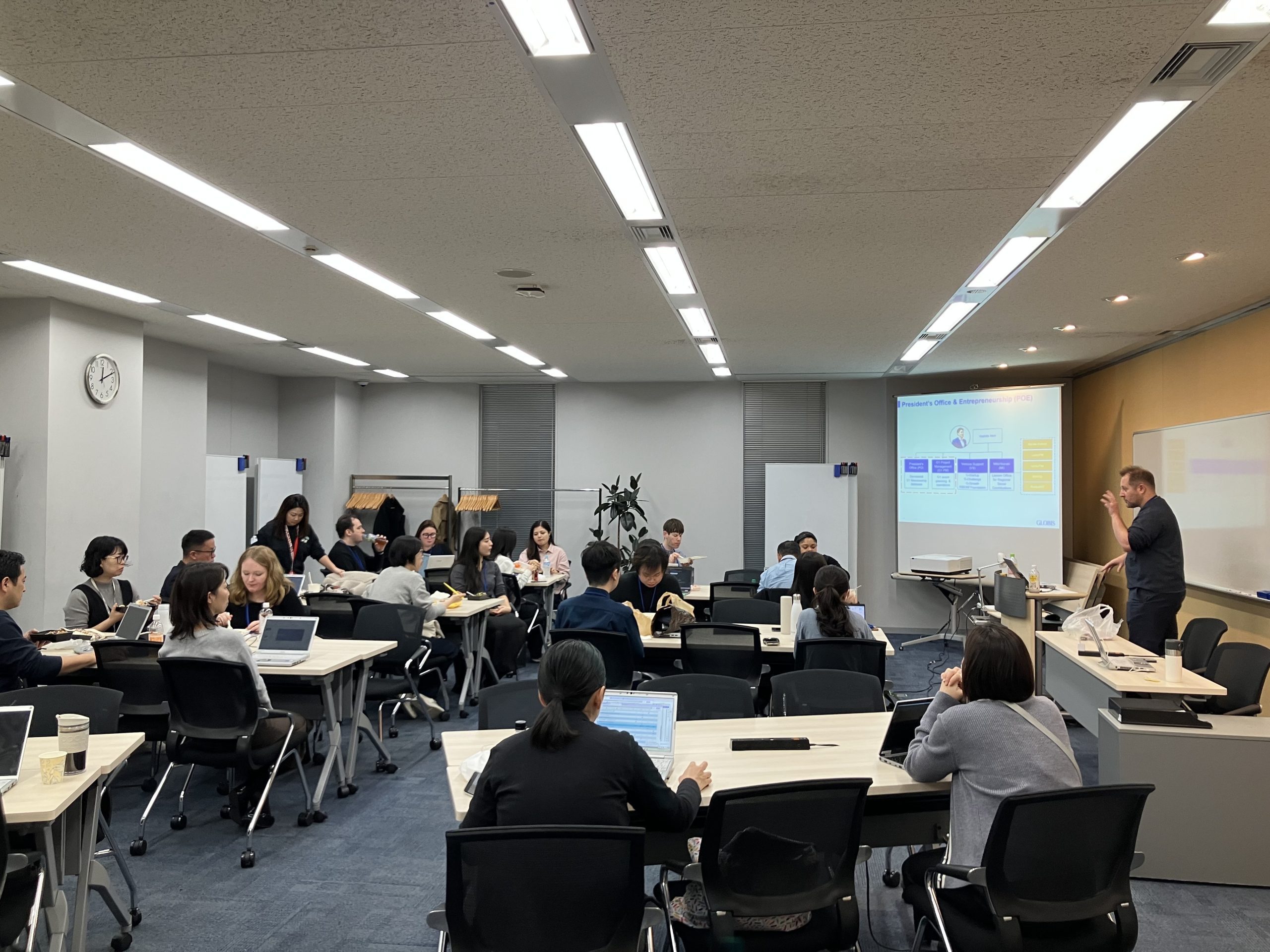 代表の堀義人との対話の場である「プレジデントランチ」や、自身の価値観とグロービスウェイを理解して今後の挑戦を考える「1年目研修」「3年目研修」があります。